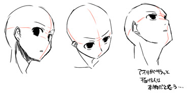 あとはいろんな向きを描けるように練習、といったところだろう。これもリアルを資料にするもよし、うまい人を参考にするもよしだ。横向きになるにつれて鼻などの顔の起伏によって奥の目が見えなくなっていくことなど、考えればあたりまえなことを意外と見落としがちになってしまうところはやっぱりあるので、意識して描きたい。アオリとフカンの構図も必要になると思うが、やはりこれも研究研究、である。未だにアオリは慣れないぼくがこんなことを書いているのもどうかと思うのだけれどね。……べ、勉強勉強!